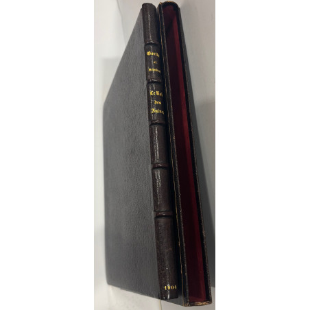 Paris, Édouard Pelletan, 1904, in-4, [25-4] ff, Maroquin noir, dos à nerfs, bordure des contreplats ornée de filets et fleurons, tranches dorées, double filet sur les coupes, couvertures et dos conservées, étui [Blanchetière], "Wer reitet spät durch Nacht und Wind?" Très belle édition du célèbre poème de Goethe, illustrée de bois gravés en couleurs et tirée à 214 exemplaires numérotés : un des 200 sur vélin du Marais . Exemplaire superbement établi par Henri Émile Blanchetière, relieur d'art parisien (1881-1933). L'ouvrage est orné du double portrait de Goethe et de Schubert, reproduit deux fois, dont une sur la couverture, de 6 compositions à pleine page, de 2 bandeaux, d'encadrements et d'ornements typographiques médiévalisants : l'ensemble a été gravé par Ernest Florian, d'après Henri Bellery-Desfontaines. Dans la première partie, le poème, en lettres gothiques, est reproduit en langue originale, avec la traduction française de Catulle-Mendès en regard; la seconde partie contient la partition de Schubert.
